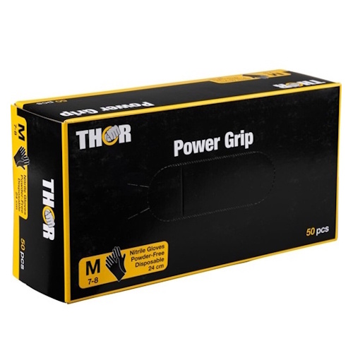 Abena THOR Power Grip nitrilinės vienkartinės pirštinės, labai stiprios, 6.5g, juodos M/L/XL/XXL (50vnt)